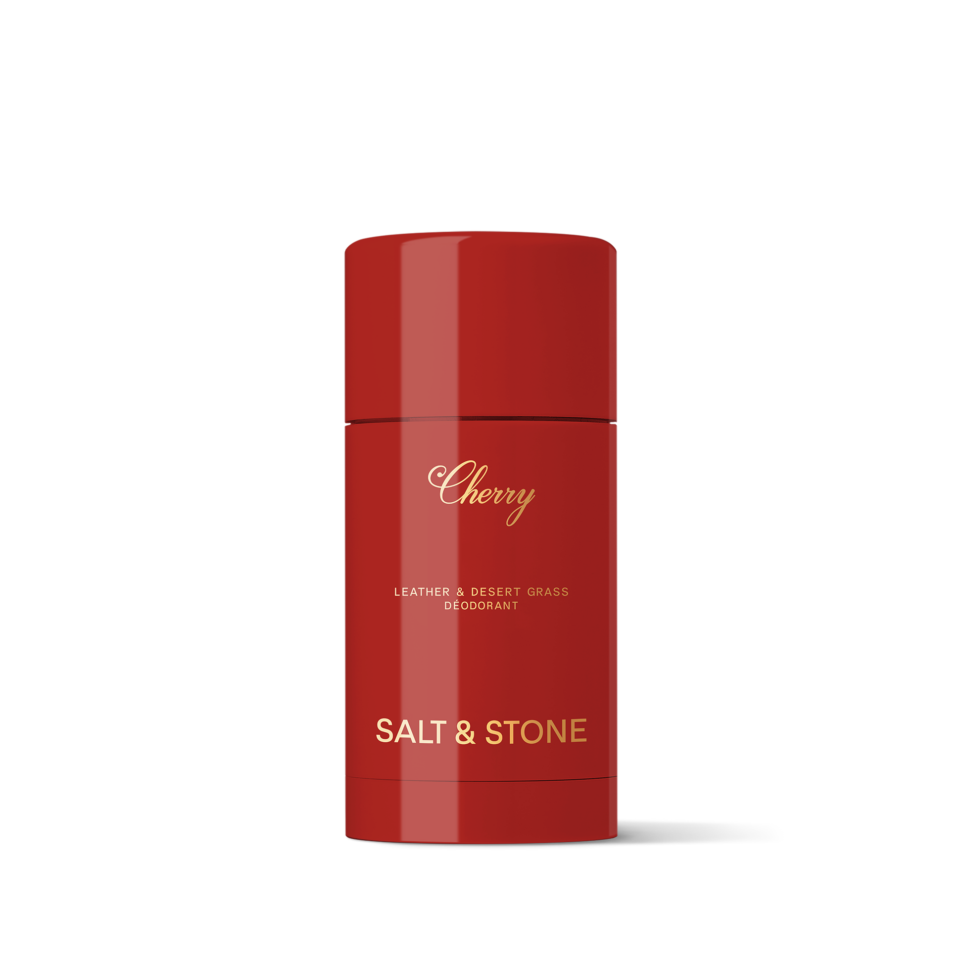 Aluminum-free deodorant formulated for 48-hour protection—in the smooth, rich Cherry collaboration scent, Leather & Desert Grass.